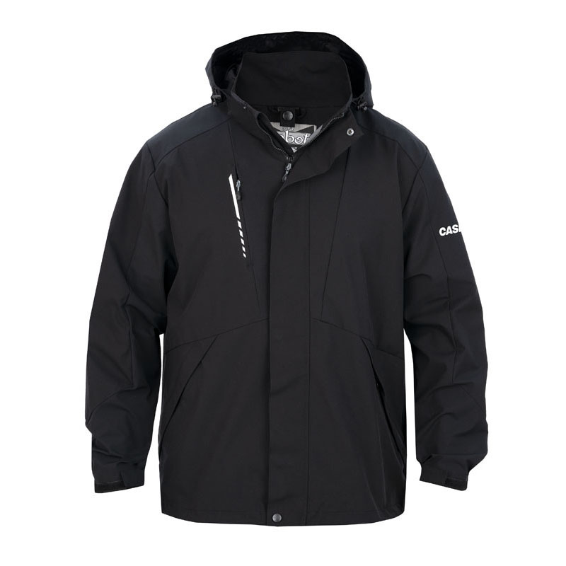 *Outer Jacket: *100% Polyester stretch fabric *100% Nylon lining *Water & wind resistant *Three exterior zippered pockets *Removable, adjustable hood *Double storm flap with chin guard *Adjustable hem & cuffs *Reflective accents *YKK® center front zipper *Regular fit *Inner Jacket: *100% Polyester shell *100% Nylon lining *4.2 oz. Dupont® Thermolite® EcoMade insulation *Two exterior zippered pockets *Stand collar *Adjustable hem *Hidden interior elastic at cuff *YKK® center front zipper *Regular fit